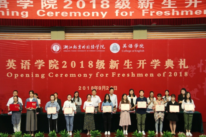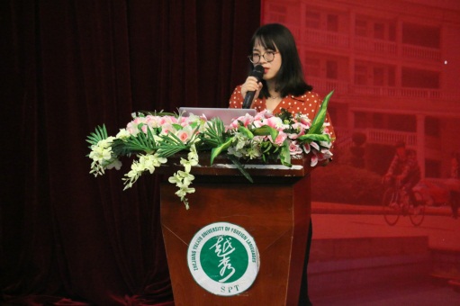 典礼第三项议程由我院老生代表翻译1501班戴柳英同学,新生代表英语1806班郑一名同学先后上台英文发言,交流大学生活感想和经验。