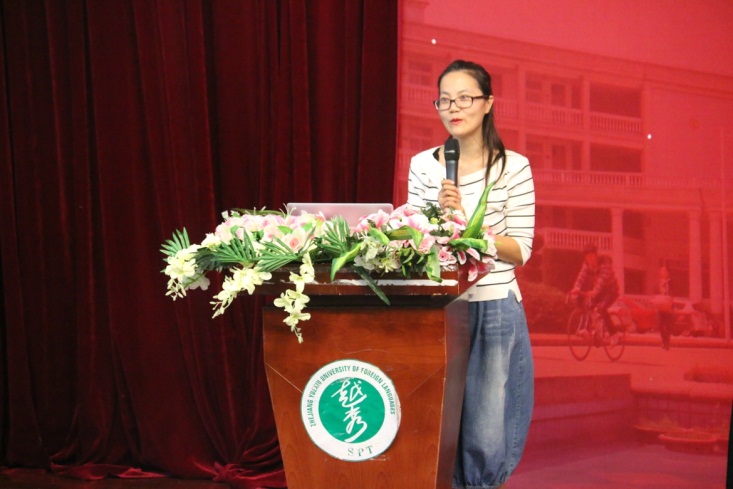 接着,英语系陈正发老师、商务英语系陈琨琨老师、翻译系张玉宏老师基本都用英文为大家详细介绍了各系部,并鼓励新生满怀热情,坚定信念学好专业知识,以饱满的姿态迎接接下来的大学生活。