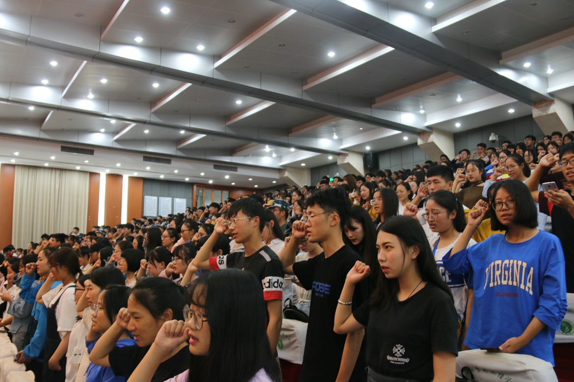 最后一项议程,新生们用青春的名义许下铮铮誓言,不负父母期待,不负恩师厚望。不负天赐智慧,不负青春理想。不做怯懦退缩,不做无益彷徨。