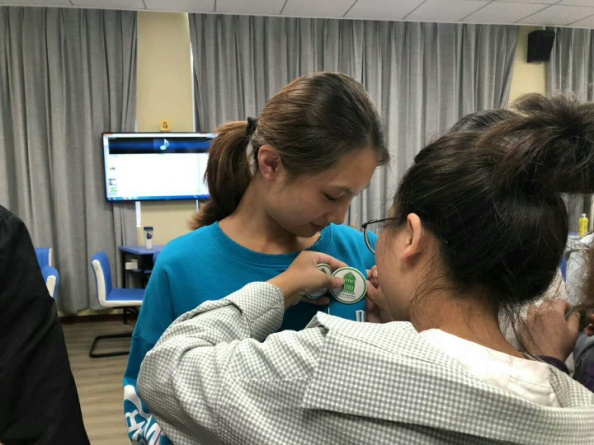 活动接近尾声,17级大二年级的全体同学们为新生学弟学妹们献唱了一首泰语歌曲,伴随着温暖美妙的音乐声,泰语系四位老师为大二的学生一一送上了由外教朱云涛老师用心设计,且饱含特别纪念意义的泰语系徽章,随后大二学生又给自己学号尾数对应的学弟学妹们亲手戴上了专业徽章。