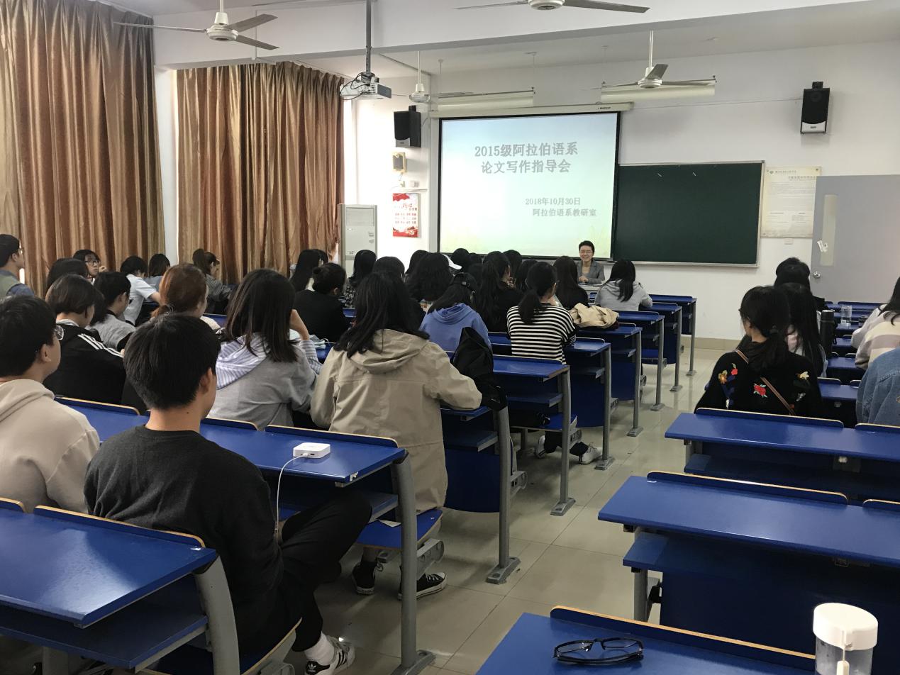 10月30日,阿拉伯语系老师对2019届阿拉伯语毕业生进行了论文指导的培训。主要针对论文写作过程中所需完成的任务书,开题报告,毕业论文及其他各项。
