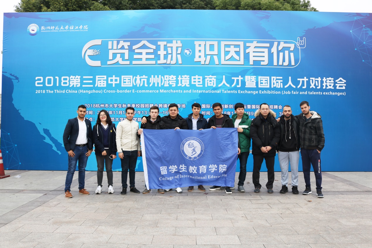 11月17日,我院留学生参加了“E揽全球·职因有你”2018年第三届中国(杭州)跨境电商人才暨国际人才对接会。此次对接会在杭州师范大学举办,足球一世官网共有来自6个国家的11名学生参加。早上10:00,本次论坛正式开始,杭州市跨境电商综试办外联宣传部部长武长虹,杭州市就业管理服务局副局长张满、专技人员交流服务处处长叶金香等出席参加了此次国际创新创业论坛。