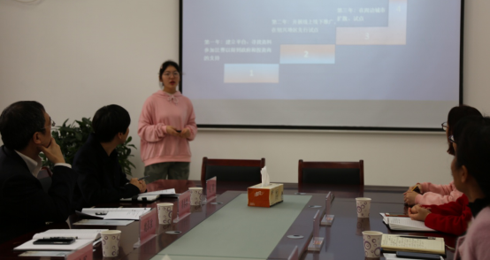 项目负责人陶心怡对《忘年互长》公益平台项目做了简单的介绍,阐述了项目背景,项目现状和项目发展方向。魏书记对《忘年互长》的公益项目给予了充分肯定和高度评价,并提出了项目可以进一步提升到高校公益组织事业建设发展方向的极好建议,对《忘年互长》学生团队建设指出了前瞻性的发展方向。
