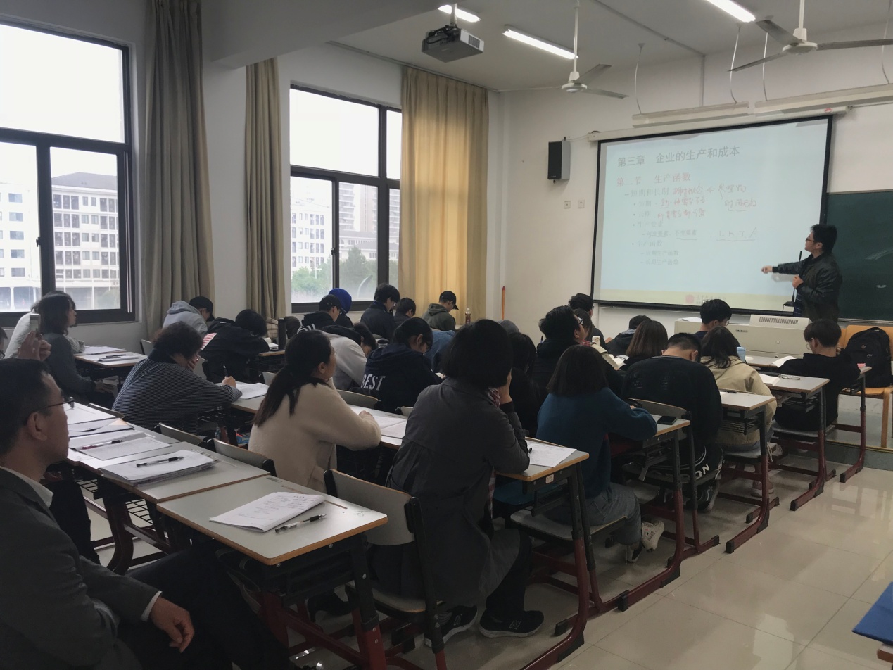 《西方经济学》是国际经济与贸易专业、工商管理等专业基础课,在采用马工程教材之后,的确遇到课程难度上升的问题,这从往届学生补考率就能看出来。基于这本教材本身难度偏大,又是在大一开设,对学生来讲,有不小的难度和挑战。对老师来说,一门课程,两本教材,包括宏观经济学和微观经济学,总共16章,755页,教师要通过每周3课时完成,难度可想而知。西方经济学整个体系比较完备,作为基础课,在其他后续课程中可能会涉及到,因此不能随意删减。这就给教师提出了一个巨大的挑战,要在活跃课堂和知识体系之间做出取舍。这就需要依靠团队的力量,通过集体教研、集体备课、集体研讨来解决这些问题。
