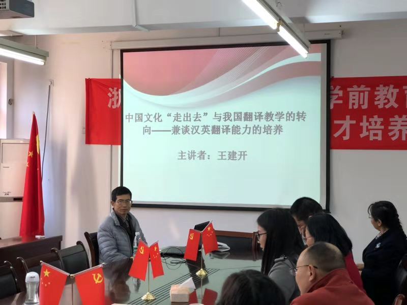 11月28日下午,复旦大学外国语语言文学学院教授、博士生导师,复旦大学文学研究翻译中心副主任王建开教授莅临我院作题为《“中国文化走出去”与我国翻译教学的转向——兼谈汉英翻译能力的培养》讲座,本次讲座由英语学院院长余卫华教授主持,英语学院众多师生参加了本次讲座。