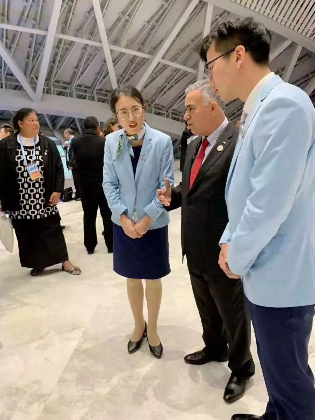 所幸,机会降临到了我身上,在大会期间,我获得了多次为外宾服务的机会,尤其是来自各个阿拉伯国家的嘉宾。其中印象最深刻的是为沙特城市规划与建设部副部长一行人在展馆用阿拉伯语介绍京东、百度、高德等部分产品时获得了他们对我语言能力的高度肯定。对此,我表示十分感激。”高铭铭同学如是说。