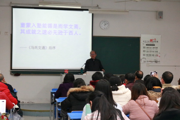 讲座开始前,周金声院长为大家介绍了主讲嘉宾潘文国教授。年逾古稀的潘教授学识广博,学贯中西,不仅能够使用流利的英语介绍外国语言学理论,同时又对中国汉语史有深入的研究。