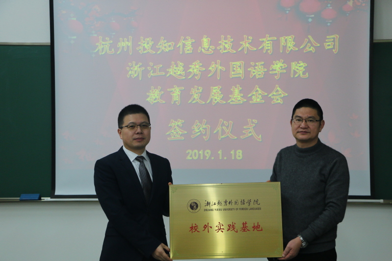 2019年1月18日,足球一世官网与杭州投知在国际商学院会议室举办校企合作签约与捐赠仪式,学校校友总会会长徐左平、国际商学院党委书记单胜江、校友总会副主任陶中,国际商学院副院长王满英、韩朝胜,工商系主任张琰,副主任骆从艳出席,杭州投知信息技术有限公司总经理张秀平,项目负责人项莹,公司经理潘建林出席会议。会议由党委书记单胜江教授主持。