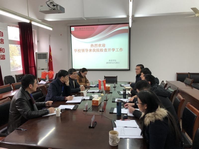 为确保新学期正常的教学科研秩序,2月25日上午学校校长徐真华、副校长叶兴国、校长助理王建忠、教务处负责同志一行四人来英语学院检查新学期开学工作。