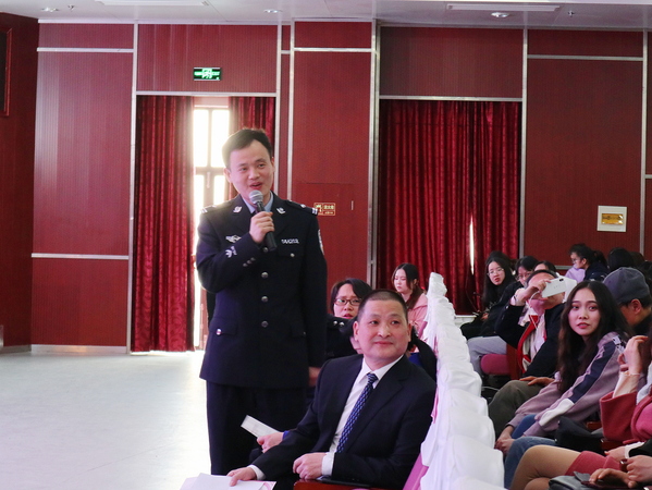 开学典礼上,绍兴市公安局出入境管理局的两位警官针对留学生关于签证等问题进行了解答。班助代表朱金晶向大家讲述了她在留学生教育学院任职两年所发生的各种各样的趣事和积累的经验。历届留学生也通过视频的方式为本学期的留学生们送来了祝福。