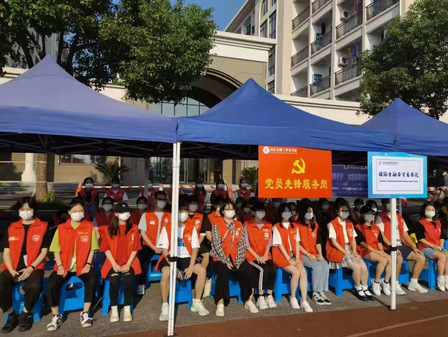 9月18日早上七点前党员志愿者们到齐现场,协助大本营进行布置的工作,部分党员驻扎在“党员服务岗”,留守大本营进行迎新工作,其他党员志愿者们按照工作安排,分散到各个设点进行志愿服务,从学校东门到和成桥,从和成广场到学院报到点,从SPT服务街到宿舍楼,校园的条条道路上都活跃着金融学院党员志愿者们活力可亲的身影。一个个身穿红马甲,一张张充满热情的笑脸,为校园注入慢慢活力,金融学院党员同志们以不怕苦、不怕累的精神,配合学校团学做好接站、领路、咨询、协助新生搬运行李等一系列工作,时刻坚持在迎新第一线,他们的身影成为校园里一道靓丽的风景线。