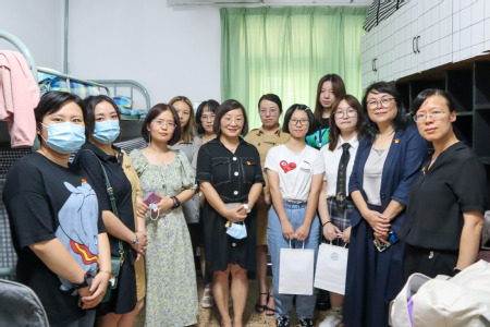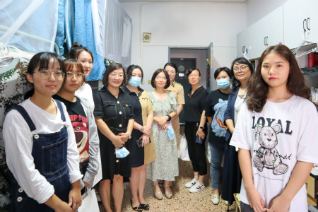 9月19日下午,西方语言学院院长葛金玲、党委书记陆海萍、副院长吴彦秋、龚茜,学工办副主任邵澄思及全体辅导员分别走访了我院2021级新生寝室,对新生们进行了关心和慰问。