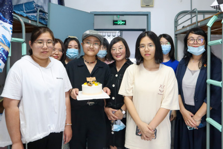 葛金玲、陆海萍带领新生班主任、辅导员一行走访了玫瑰苑B617寝室、桃李苑F305寝室。为今天生日的意大利语专业叶凌君和波兰语专业邱昱伟两位同学送上了生日蛋糕和祝福,两位同学对学院安排的暖心活动表示感谢。