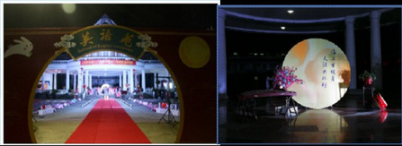 本次活动在布景上花了很多心思,本着应景、节俭的原则,物尽其用,最大限度发挥英语学院圆顶的场地优势。同时,注重细节,演职人员的服饰代入感很强。精心布置之后,花好月圆之夜的“英语苑”显得格外古朴典雅。