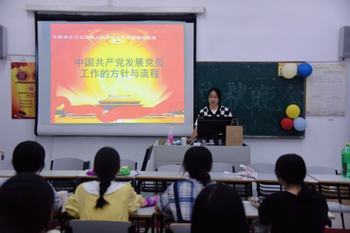 为贯彻落实学校党史学习教育走实走深的讲话精神,进一步加深中文学院2021级新生对中国共产党的认识,熟悉加入党组织的基本流程, 9月21日下午,我院开展新生入党流程宣讲会,中文学院学生第一第二党支部的4名优秀预备党员向新生们进行了详细的入党流程宣讲。