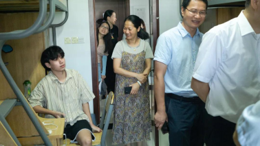“从哪里过来?住宿还有什么问题吗?对大学生活有什么计划?”走进寝室,刘院长老师详细询问了新生们的专业选择等相关情况和来校生活的适应情况,勉励同学们要早作谋划、刻苦学习,争取学有所成。李书记仔细询问了新生的报到和生活情况,介绍了金融学院、越秀镜湖校区、绍兴城市的一些具体情况,并提醒学生提高安全防范意识,注意人身和财产安全,保持公寓整洁,加强与班主任和辅导员的联系。