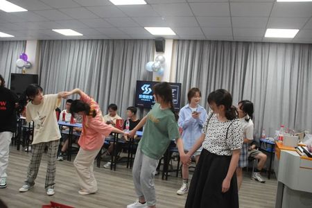 联欢会期间大家都积极踊跃地参加游戏,活动的场面非常愉快。