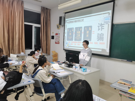 宣讲主要分为五个部分:电信诈骗、贷款诈骗、网络诈骗、如何防范诈骗以及补救措施。宣讲人员结合视频,生动形象地讲述各种诈骗事例,加深了同学们对诈骗的了解、增加了同学们的安全意识和自我防范意识。