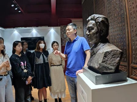 下午两点,同学们乘坐大巴到达张颂纪念馆。张颂先生是播音界的泰斗,是中国播音学学科体系的创立者,培养了大批优秀的播音员、主持人和教师。张颂纪念馆馆长李鑫和浙江传媒学院罗景昕老师为同学们介绍馆内的陈列品和张颂先生的手稿。同时,赵倩老师向大家深情朗诵了张颂先生为后生们留下的一封信,全体师生无不为之动容。同学们纷纷表示希望自己能像张颂先生信中写到的一样——“意气风发地独具特色,独占鳌头!走上理想的工作岗位,为播音系争光。”