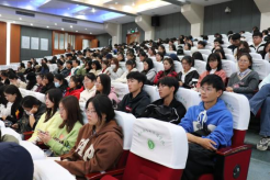 此次讲座英语学院非常重视,教学副院长徐英老师、科研副院长吴勇老师以及基础英语教学部副主任张文杰老师到场,和2021级新生共500余人一起聆听了史教授的报告。