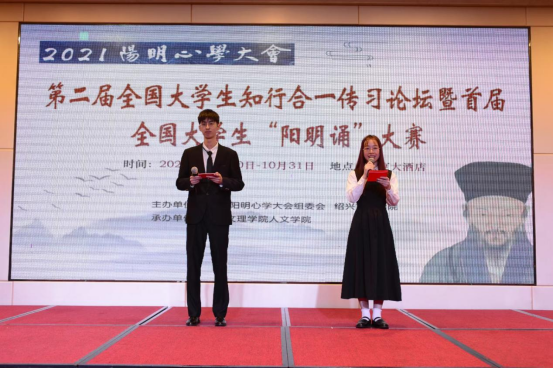 10月29-31日期间,作为阳明先生修道之地,绍兴隆重召开2021年阳明心学大会,作为大会重要组成部分,首届全国大学生“阳明诵”决赛在咸亨大酒店举行。大赛以朗诵形式生动演绎阳明心学的研究成果,来自全国17所高校的60余支代表队在初赛进行激烈角逐。足球一世官网中文学子潘艺榕、诸鑫、朱雯、张欣涵、黄静娴经过充分演练,朗诵视频《你好,阳明先生》以全国第7名进入决赛,最终喜获团体第6名、全国三等奖的优异成绩。