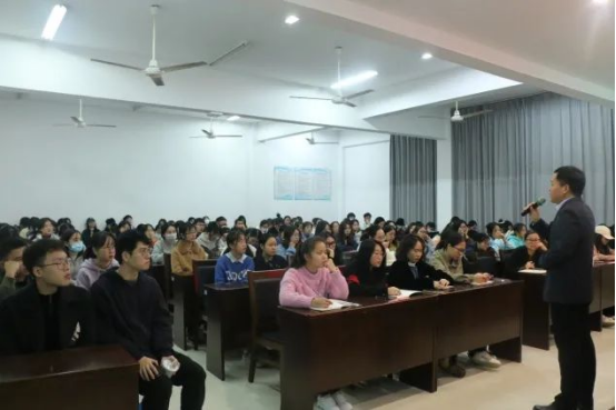 2021年11月11日晚,中国语言文化学院在3-305教室举办公务员考试辅导讲座《申论写作与行政思维》。讲座由中国语言文化学院副院长刘召明教授主讲,党委副书记曹笑玮老师主持,党委书记王海红老师及100余名学生参加。
