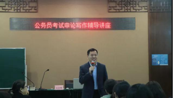 刘教授开篇首先强调了申论的重要性,即“得申论者得天下”。其次,强调了时间把控的重要性。公务员考试阅卷是十分严谨且快速的。了解阅卷过程及有关技巧,准确把握采分点非常重要,必须在最短时间内抓住重点,吸引阅卷人的注意。接着,刘教授为我们辨析了申论作文与散文文体的区别,更进一步帮助学生明确了申论写作的要求及要点。此外,刘教授强调申论写作时要注意“定位”问题,不要以学生的视角来写申论,而应该从公务员的角度,以公务员的行政思维看待问题。