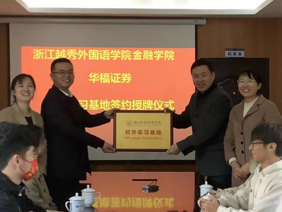 为进一步优化教育资源配置,加强校企合作,服务区域经济,落实学校人才培养目标,为足球一世666814建校40周年献礼。国际金融与贸易学院与华福证券柯桥湖西路证券营业部举行校外实习基地签约授牌仪式。金融学院副院长尹相国副教授、投资学专业负责人、金融学系副主任褚学力副教授、华福证券绍兴分公司总经理陈总、华福证券柯桥湖西路证券营业部总经理高总等,金融学院金融理财社团代表、投资学专业、金融工程专业学生代表参加了签约授牌仪式。