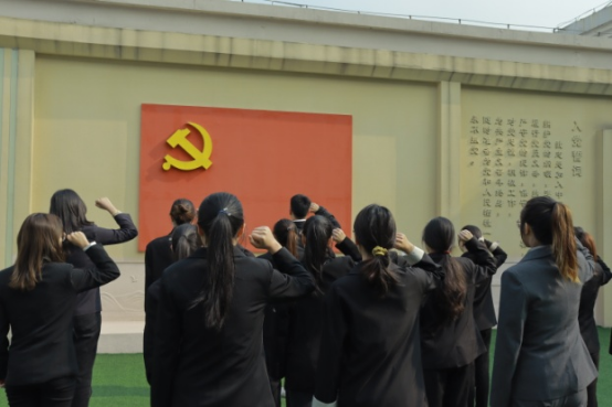 国际商学院党委于2021年12月7日中午12:30在镜湖校区食堂四楼宣誓墙前开展新发展党员入党宣誓仪式,国际商学院党委副书记赵莹老师、各学生党支部书记参加本次活动。