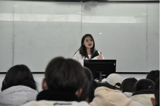 传播学1901班班长、国家奖金学获得者林以斯帖学姐向大家分享了自己的学习经验。她强调了绩点的重要性,建议学弟学妹先打好专业基础,确定自己的目标;同时要积极参加校内外各种比赛与实践活动,将专业与自身特点相结合,实现经验的积累与进阶。