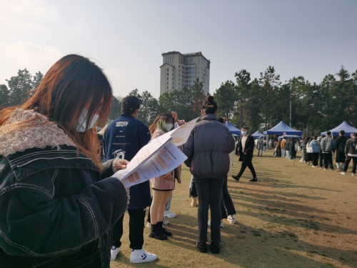 在等候核酸检测过程中,也不乏这样的身影:乐学好学善学的英语学子手捧学习资料,为考研而战,为教资思索,为等级考试蓄力,为期末考试苦读……让勤奋学习成为青春远航的动力;那束光,定会将你的前途照亮。