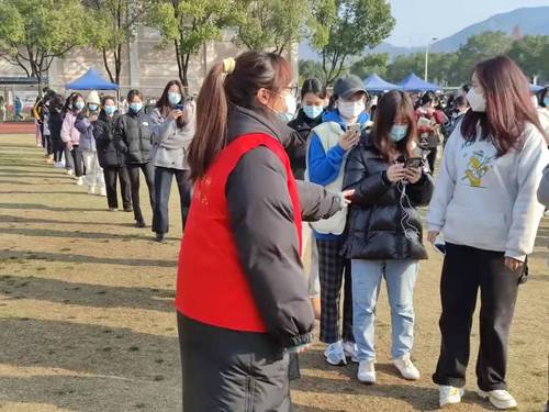 参检学生全程佩戴口罩,服从现场工作人员要求,保持1米间隔有序排队,依照志愿者提示登记信息、分组候检,文明礼貌对待检测台工作人员,检测结束自觉迅速离开,不扎堆、不聚集。