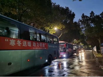 研途有爱,专车接送。考虑到疫情防控要求,为最大限度保障考研学子的安全、节约路途中时间,学院副院长徐英和学院党委副书记黄莉莉等学院领导商议,决定:包车!学工办、辅导员核查考生名单、确定对应考点,院办对接车辆;最终,带有学院加油横幅和考点标识的六辆考研接送专车顺利分赴越城区六个考点。