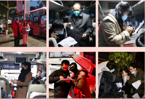 研途有爱,导师护航。考虑到考生考前难免会焦虑,学院发布随车带队老师招募通知,得到学院教授、考研导师、辅导员的积极响应。最终,杨贤玉教授、胡启平教授、翻译系副主任谌莉老师、英语系宋国芳老师及学工办俞科安老师、赵凯老师6位老师陪同英语学子一同前往,做好后盾。临行前,徐院长登上每一辆车与考研导师一起为考生加油鼓劲。他对随行的老师们表示感谢并嘱托他们一定要把考生守护好。
