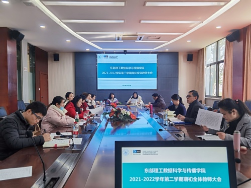 新岁序开,共赴新程。2月25日下午,东部理工数据科学与传播学院组织召开了学院期初全体教师大会,学院领导班子成员及全体教师参加了会议,会议由戚宏波院长主持。