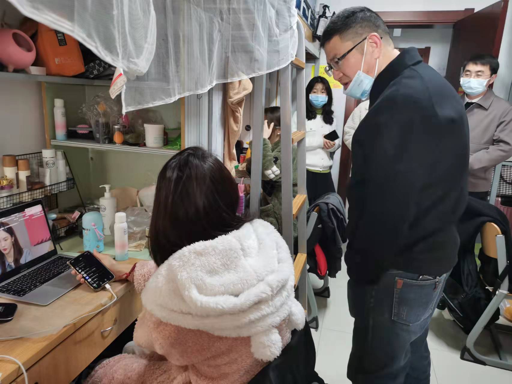 为扎实做好学生返校后疫情防控工作,引领学生轻松开学,健康成长。2月27日,国际商学院全体领导和辅导员们深入学生寝室走访慰问。