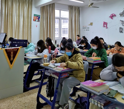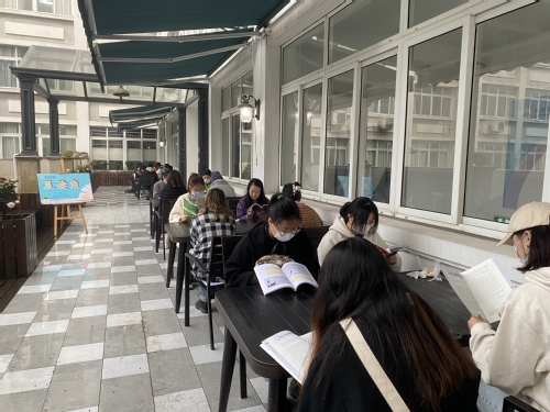 法语2020级学生在二楼“读书角”自主晨读,成为本周西语学院一道亮丽的的风景线。法语19级班主任费群蝶携法语系学生在智慧教室举行晚诵活动。通过晨读晚诵,激发语言学习的兴趣。