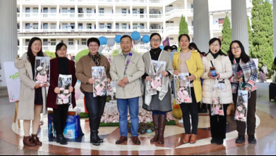 为庆祝第112个国际妇女节,为让学院每一位女教职工能够感受到节日的快乐,3月8日上午,英语学院全体领导早早的在圆顶大厅等候,为每一位学院女教职工送上鲜花礼品和节日祝福,以此感谢她们对学院的辛勤付出。