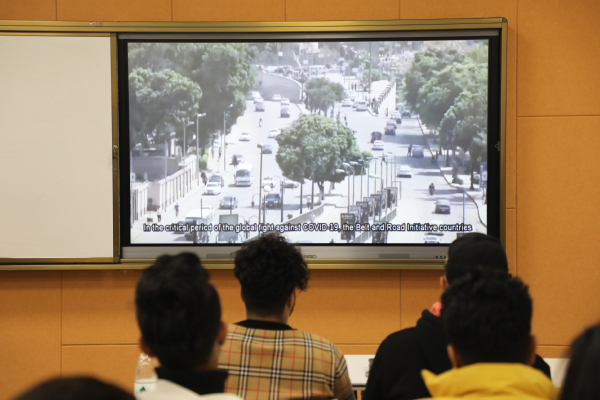 随后的五个视频课程,呈现了五个精彩的故事,像是一幅幅画卷在留学生们面前缓缓展开。中国共产党的奋斗故事让留学生们了解了这个伟大的党的历史及其对中国做出的贡献;中国与周边国家共生共荣的故事让留学生们了解了“一带一路”的政策,当视频中出现“一带一路”政策为其国家带去契机和新貌的画面时,留学生们激动不已,纷纷拿起手机拍照来记录这个激动人心的时刻;武义县九龙村民的故事让留学生们了解了“共同富裕”道路的成果,视频中当地居民幸福的生活和脸上洋溢的笑容让留学生们鼓起了掌;中国人如何践行与自然和谐共生的故事则让留学生们深刻地领悟到了何为“两山”理论;在数字谱写的故事中留学生们对“智慧浙江”有了更深的体悟。