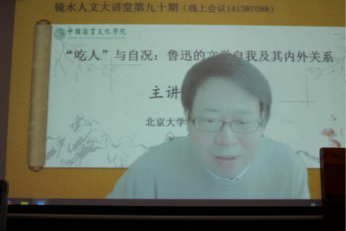 4月6日下午,中国语言文化学院邀请北京大学博士生导师,中国现代文学著名学者、著名的鲁迅研究专家高远东教授在线上为“镜水人文大讲堂”第90期,做学术讲座,题为《“吃人”与自况:鲁迅的文学自我及其内外关系》。讲座由中文学院院长刘家思教授主持。