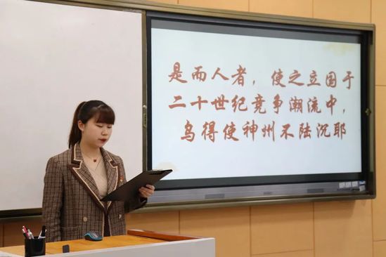 日语2110班的池清清同学以“承总理之志,扬青春华章”为主题,描绘了一个“是而人者,使之立国于二十世纪竞争潮流中,乌得神州不陆沉沦”的爱国爱民、忧国忧民的周总理,她的演讲沸腾了我们的热血,坚定了我们的理想,鼓舞我们脚踏实地,勇担使命,去努力书写属于青年一代的华章。