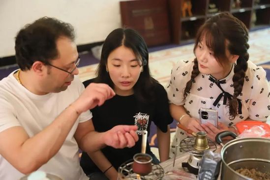 多才多艺的穆罕默德博士通过引导与启发式教学,生动形象地用阿拉伯语对“沙威玛”卷饼的制作所需食材、制作步骤以及注意事项进行详细的讲解,鼓励同学们动手体验制作并在过程中耐心指导。