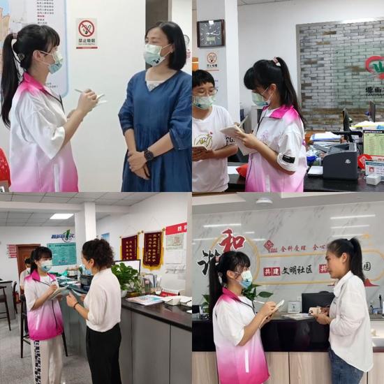 实践服务队成员首先与各社区的工作人员进行了防疫工作访谈,社区工作人员主动详细地和实践队成员讲解了疫情期间所做工作,清楚地展现了社区在联防联控之中所做出的系列工作与努力。目前,社区实行常态化管理,社区自备消毒、药水,配合专门机构进行消杀工作,社区居民对防疫措施配合良好,有序完成核酸检测。