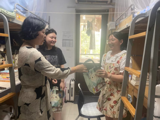 为进一步做好留校学生的管理服务工作,了解留校学生的实际需求,将对学生的人文关怀落到实处,7月1日,院党委副书记曹笑玮老师,学工办主任朱越男老师和辅导员谢曼老师走访学生宿舍慰问留校学生,将学院准备的夏日消暑物品和饮料送到留校学生的手中,给留校学生带去学院的关心和问候。