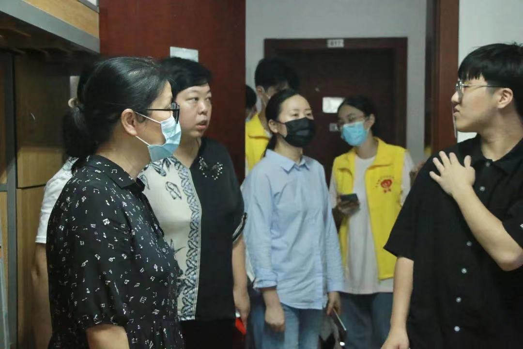 9月3日下午,由中文学院党委书记王海红带队,副书记曹笑玮、学工办主任朱越男以及20级辅导员丁玲等一行人,一同前往我院专升本新生寝室进行走访。领导老师们关心并了解了新生报到及入住的情况,并再次对他们的到来表示热烈欢迎。