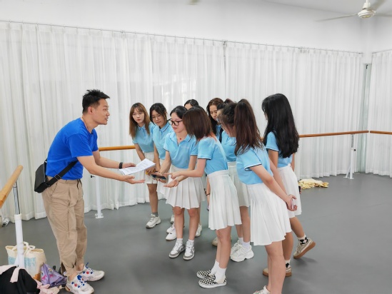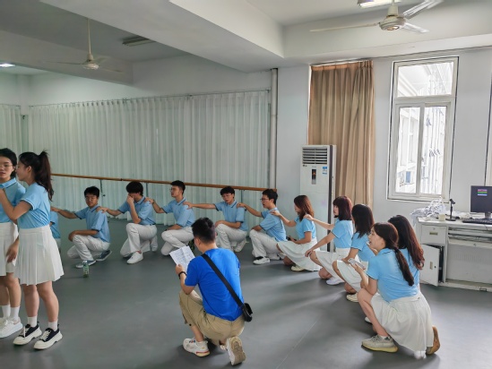 为达到更好的舞台效果,越秀艺术学院播音系的同学们秉承着专业精神反复认真走台、合光,进行彩排。