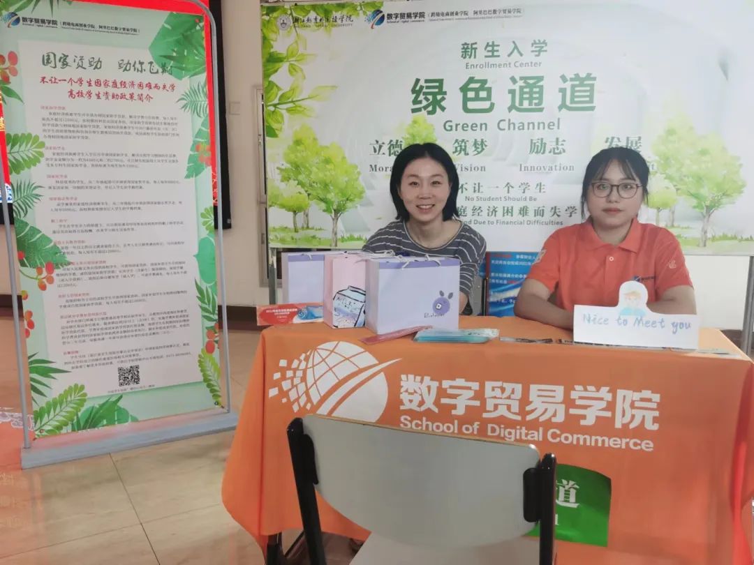 学校和学院领导们在迎新途中亲切问候新生和志愿者。激励新生们积极融入大学生活,不断完善自我素养和技能,并对志愿者们优质、贴心的服务态度点赞。数字贸易学院也为一些经济困难学生开启了绿色助学通道,并赠送了一些暖心小礼包,鼓舞他们努力学习,助力他们筑梦大学,顺利完成学业,成就自我,回报社会。