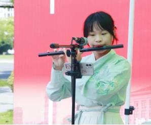 在中文大厅前,学长、学姐、老师也为迎新献上了自己的才艺——几曲高亢,唱出的是中文学子的风貌;身着汉服奏笛,墨色渲染书写的更是中文学院的风采。