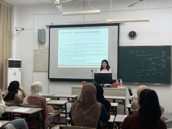 本次始业教育主要分为学习篇、生活安全篇、法律法规篇。学习方面,各班班主任向国际学生提出了有关上课纪律、出勤率、请假流程以及考试纪律方面的要求。希望国际学生在校期间能够按时上课,遵守相关课堂纪律,保持教室干净整洁。除此之外,班主任还对期中及期末考试时间、奖学金设置及判定方法进行了有关说明。