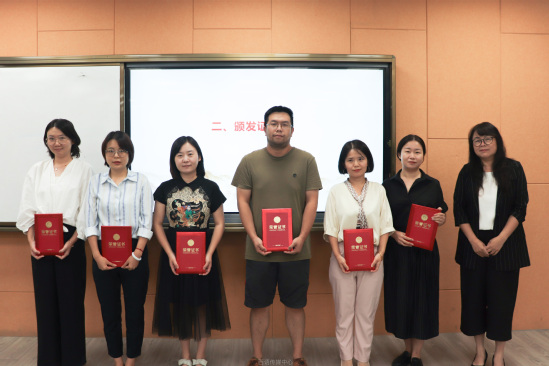 方江英宣读了2022届优秀考研导师名单,祝贺学院取得优秀成果,并代表学院表彰了优秀考研指导教师。